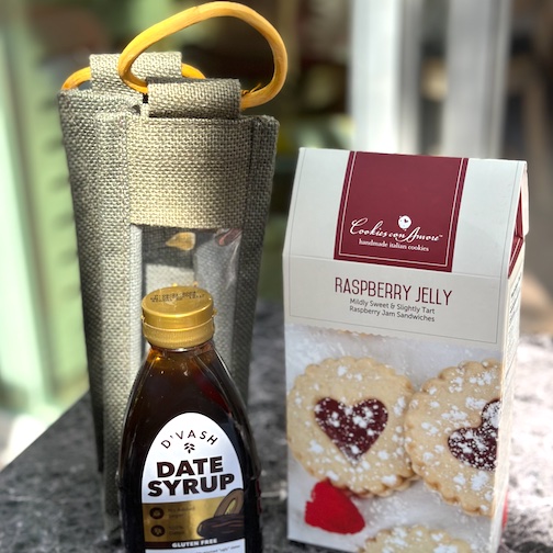 What a sweet treat! Beautiful Raspberry Cookies and you can substitute in Date Syrup in your tea! (Tea not included). But the canvas bag is!
