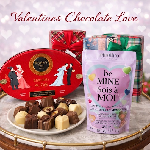 This is a lovely gift for the one you love. Chocolates, Chocolates and More Chocolates from Belgium and the famous Maxim's, Paris plus Be Mine Gummies from France.