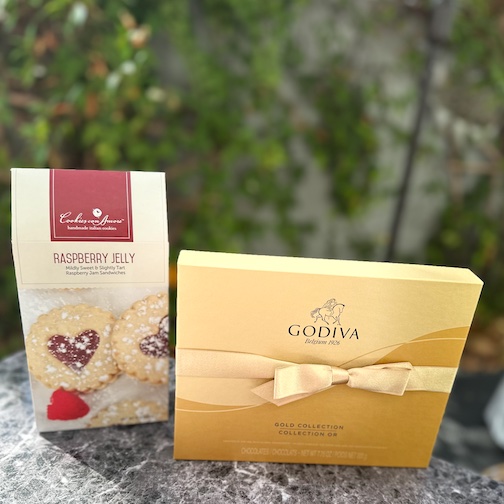 Can you imagine what it feels like to receive an incredible assortment of Godiva chocolate and a beautiful box of raspberry jelly hard cookies? This is a gift for someone special.